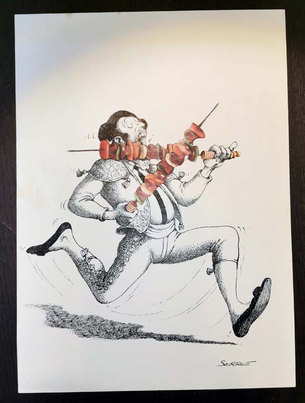 « CORRIDA BROCHETTES » – INEDIT / planche originale encre et collage de Claude Serre signée 1984