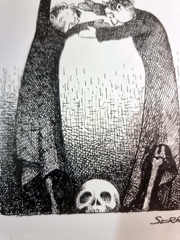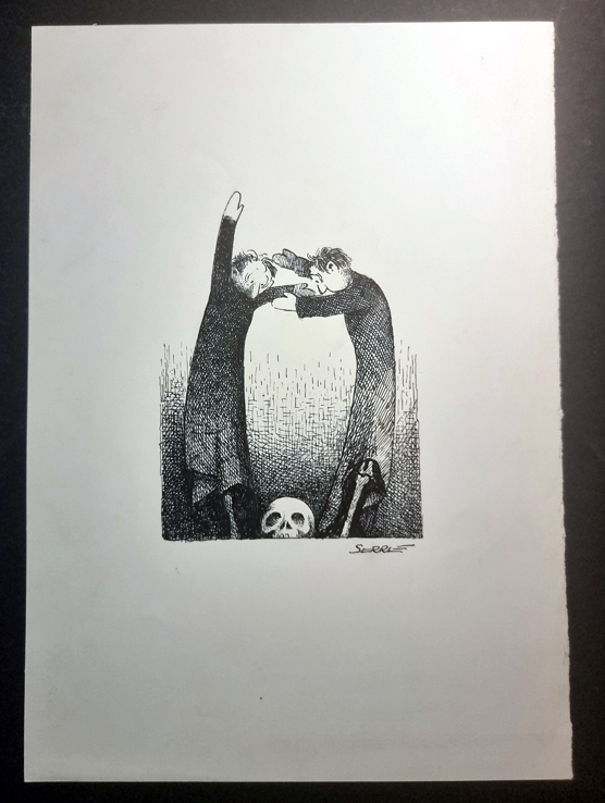 « La mort marionnettiste » Planche Originale inédite signée Claude Serre 1981 (taille totale 21 x 29 cm)