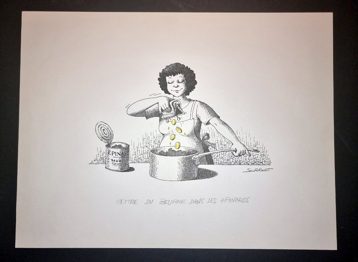« Mettre du beurre dans les épinards » Planche Originale Rare signée Claude Serre publiée dans album « le beurre 1994 (taille totale 24 x 32 cm)